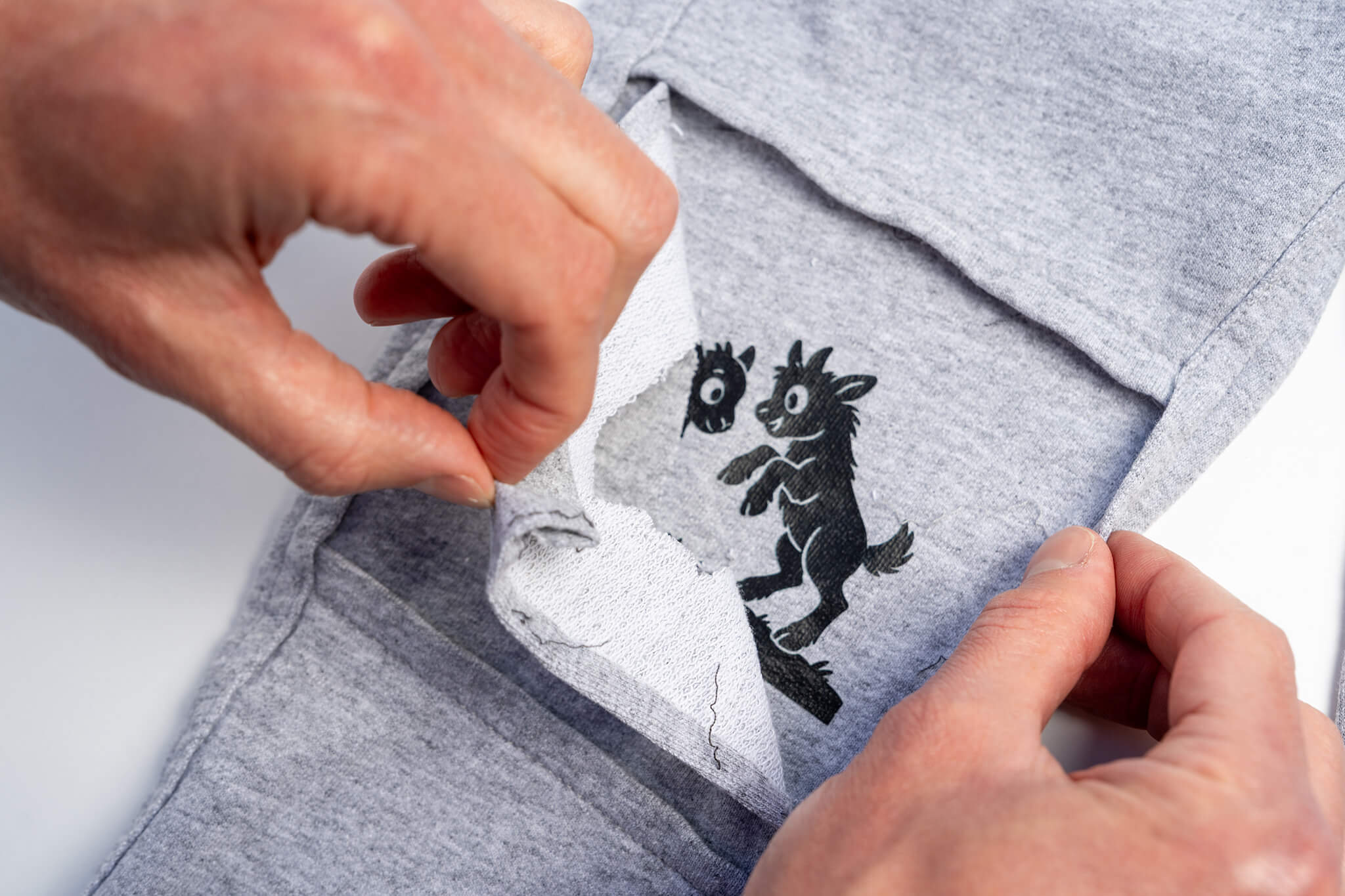 Our layers handle the rough stuff. When one wears through, just remove the securing stitch to reveal a clean, hole-free knee underneath — no sewing, no patching, no waste.