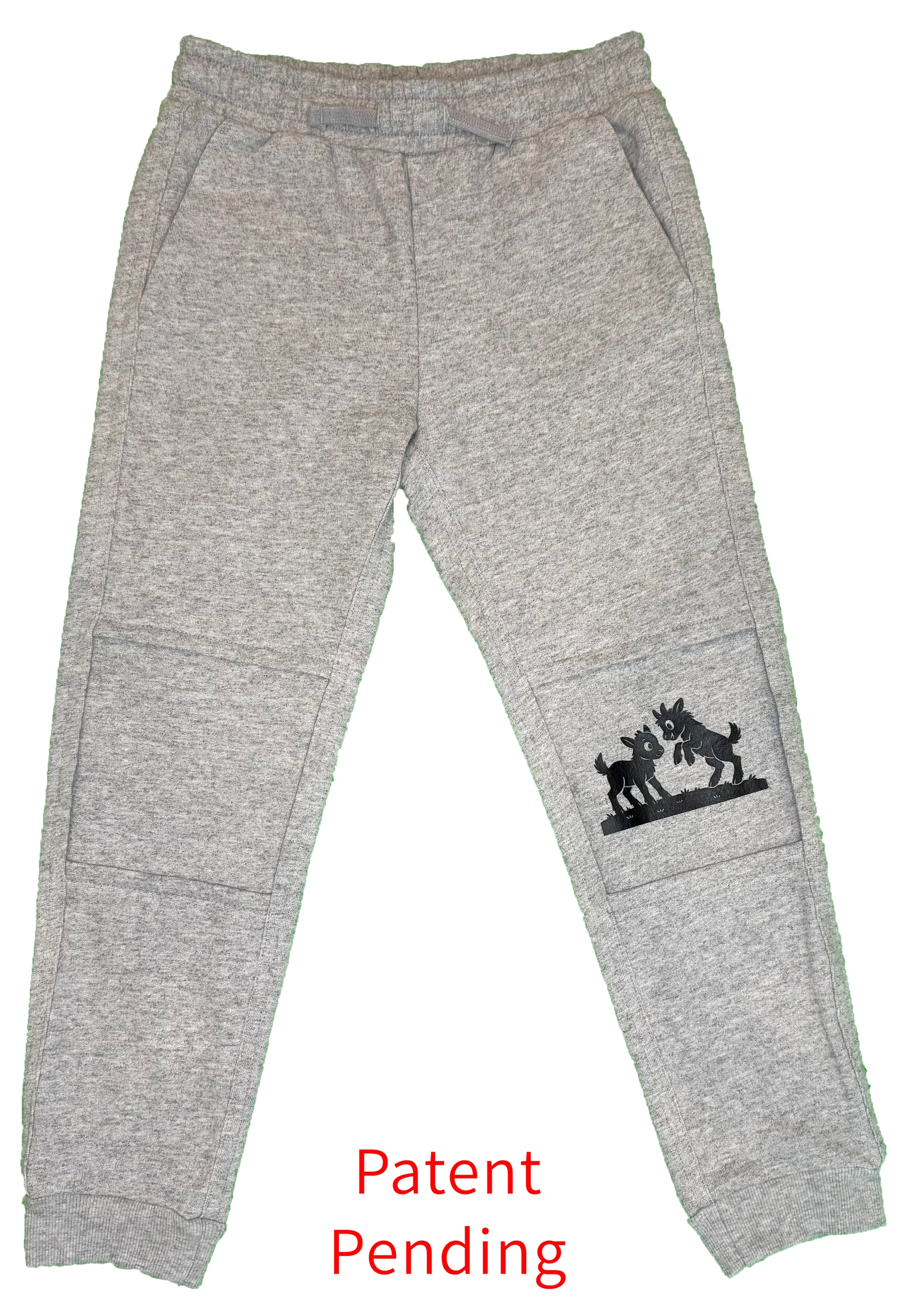 Double-Layer Sweatpants--DisCover-Knee™ Snip-a-Stitch™ to Reveal Playful Goat Kids